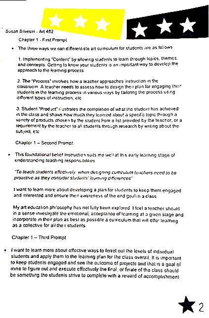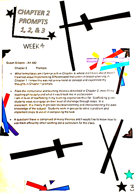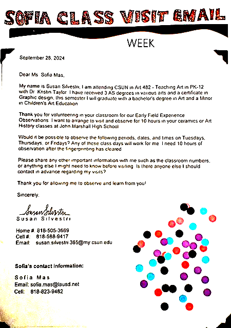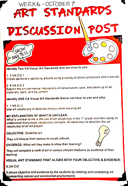 In these courses at CSUN, we learned the teaching of art philosophy, and how to create a Lesson Plan of Teaching Strategy, Early Field Experience for training, and creating a Visual Course Journal for a portfolio.